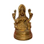 Invoke blessings of wealth, prosperity, and spiritual grace with this compact and beautifully crafted 4-inch brass idol of Goddess Lakshmi. Weighing around 380 g, this statue is made from high-quality brass and radiates a warm, golden luster — perfect for small altars, puja corners, or as a meaningful gift.