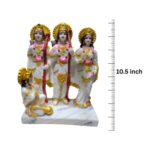 This exquisite Ram Darbar idol, standing at 10.5 inches, is crafted from soft marble-dust, giving it a smooth, velvety finish that feels delicate yet sturdy. At around 2.5 kg, its weight reflects a dense, high-quality composite, making it both substantial and easy to place in a home temple. The set beautifully captures Lord Rama, Sita, Lakshmana, and Hanuman in a harmonious pose, radiating serenity and devotion. Intricate detailing on their garments and expressions highlights the artisans’ skilled work. Its light, off-white color blends effortlessly with any décor, while the polished surface gives it a soft sheen. Designed for worship and display, the idol is ideal for pooja rooms or sacred corners. It’s also easy to maintain — just wipe gently with a soft cloth to preserve its spiritual charm.